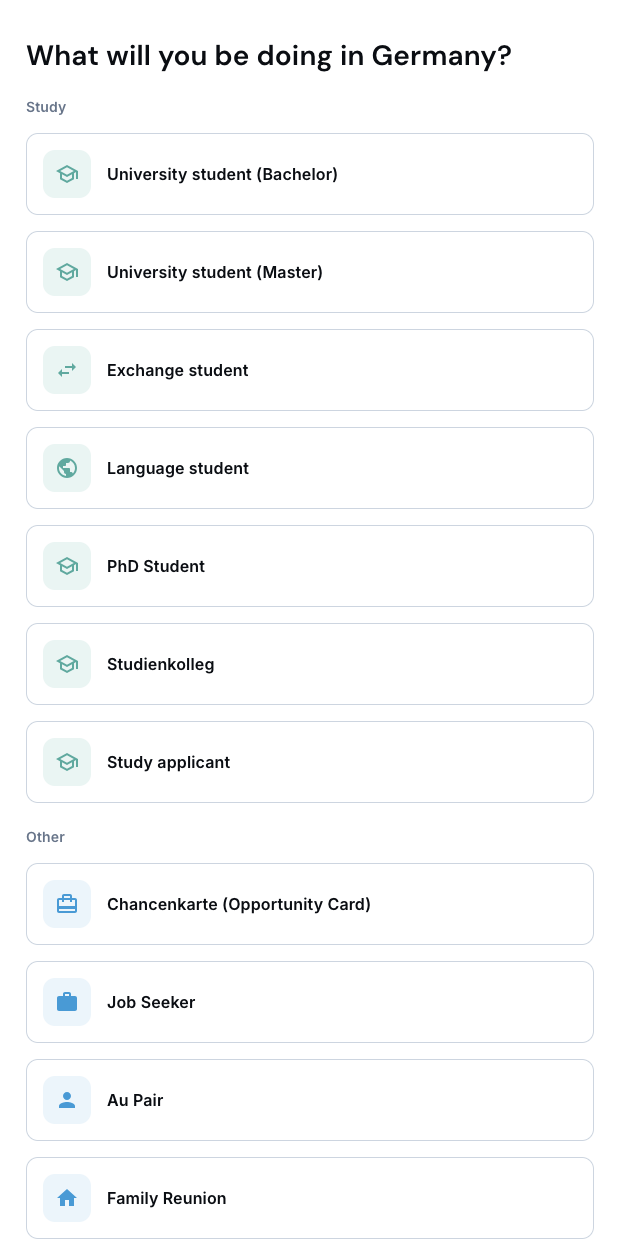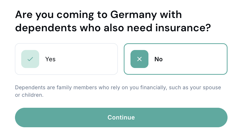 You will also have to indicate whether you are coming to Germany with dependents who also need health insurance. This will affect your eligibility for the health insurance.