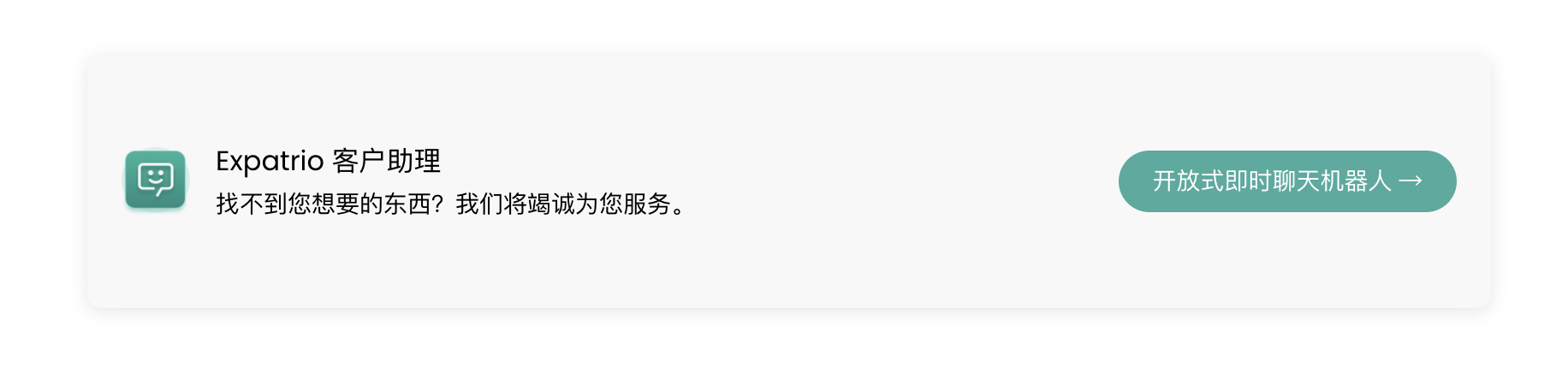 联系 Expatrio 服务团队的最快方式是使用我们网站、应用程序及常见问题页面上的智能聊天功能。我们建议您使用聊天机器人,这是解决您疑问的最快途径。